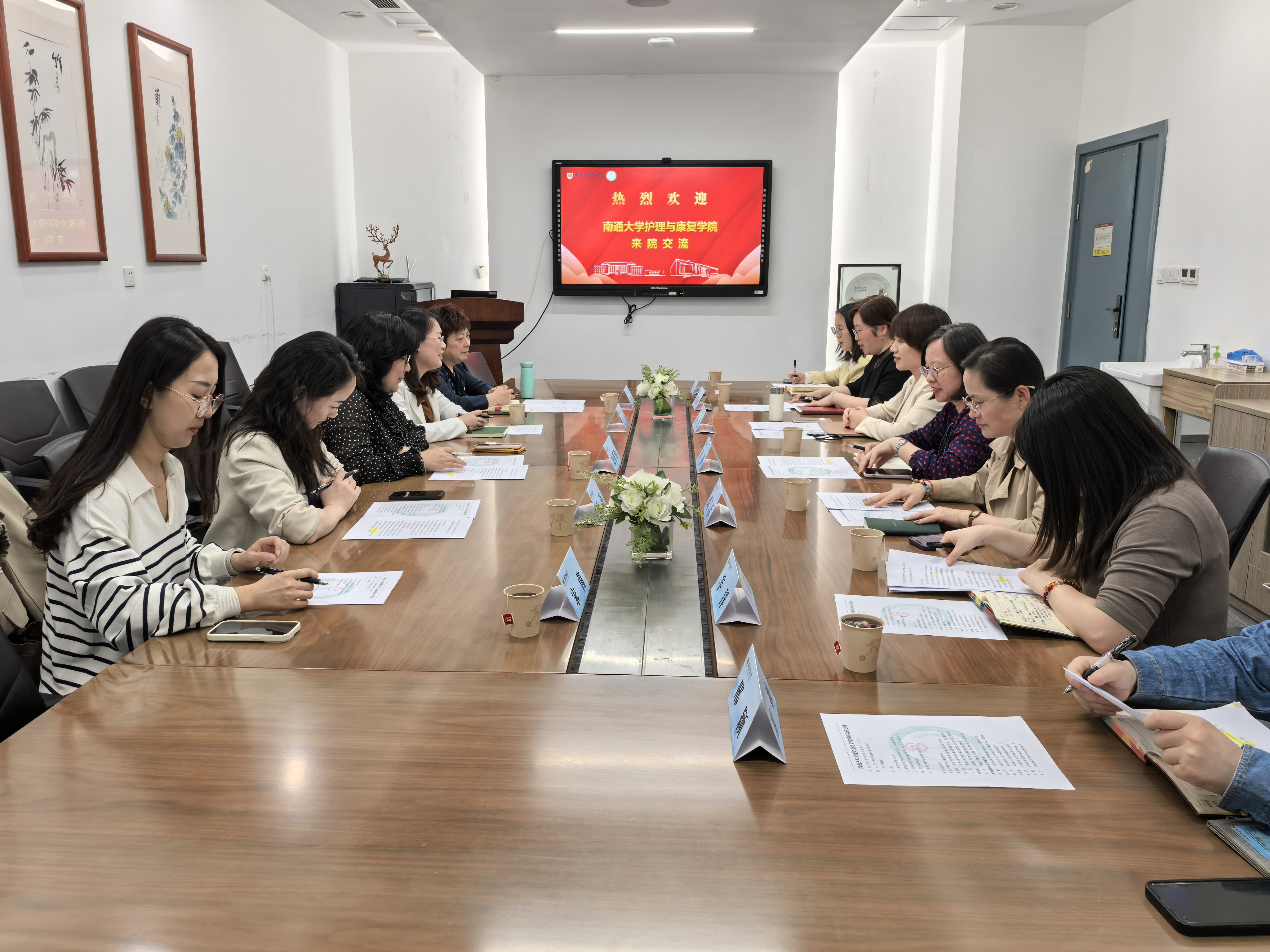 3月26日下午,南通大学护理与康复学院党总支书记史亚琴,副院长、党总支副书记张凤、王萍,发展顾问徐旭娟,实验教学中心副主任宋茵来我院开展交流活动。院长许勤,党委副书记副院长高兰天,副院长嵇艳参加,会议由教研办陈晓鋈主任主持。