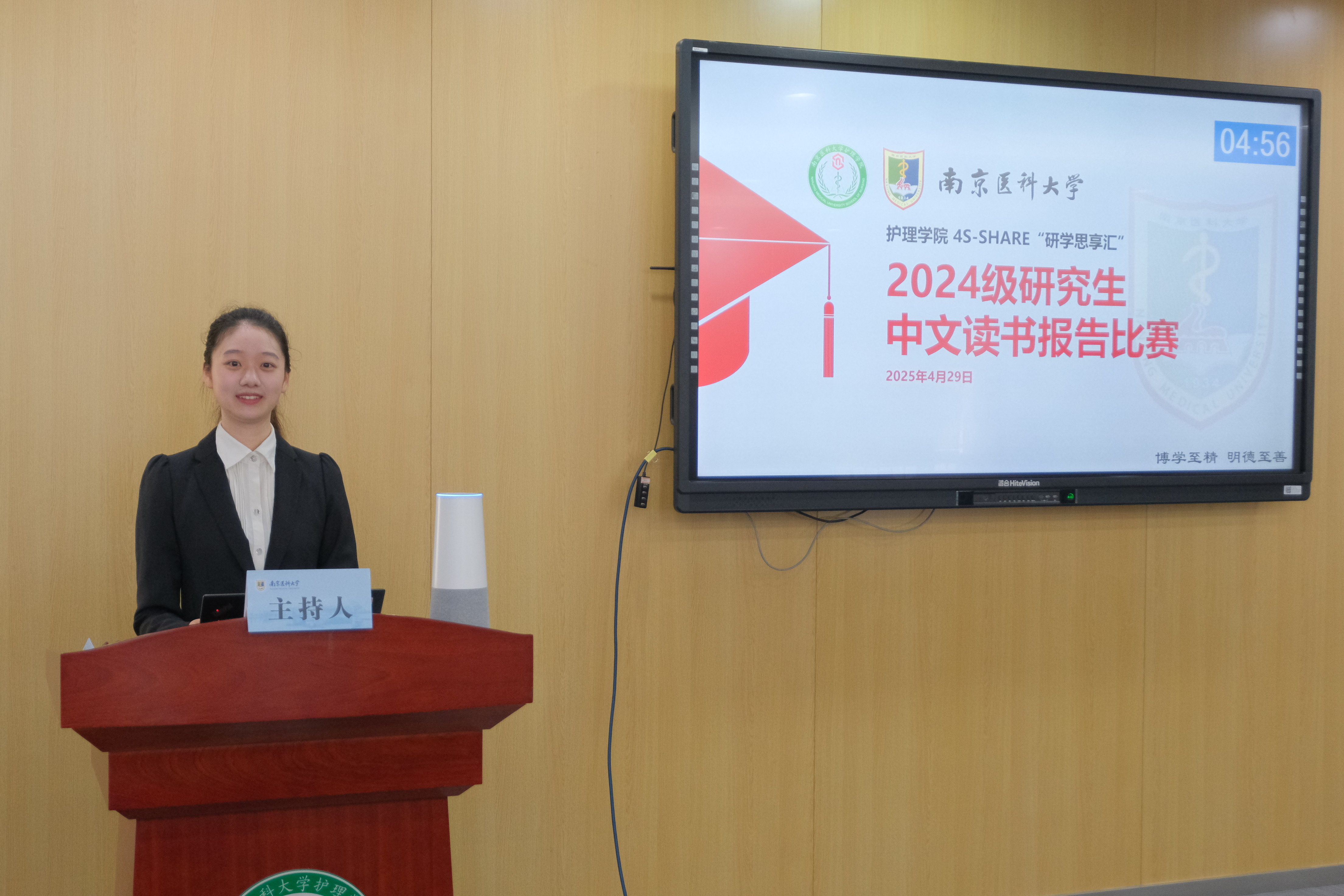 为拓宽研究生学术视野,营造求真严谨的学术氛围,提高阅读探索的积极性,4月29日上午9:30,我院顺利举办了2024级研究生中文读书汇报比赛,并同步线上直播。南京医科大学公共卫生学院樊宏副教授、附属肿瘤医院护理部赵云副主任、附属妇产医院产房樊雪梅护士长应邀担任评审专家,开云(中国)官方网站督导丁亚萍教授、副院长朱姝芹副教授、学科建设与研究生管理办公室雷阳老师、倪卉老师,学生工作办公室张晓路老师等教师代表及研究生与本科生同学们参加了本次比赛。活动由2024级研究生温天虹主持。