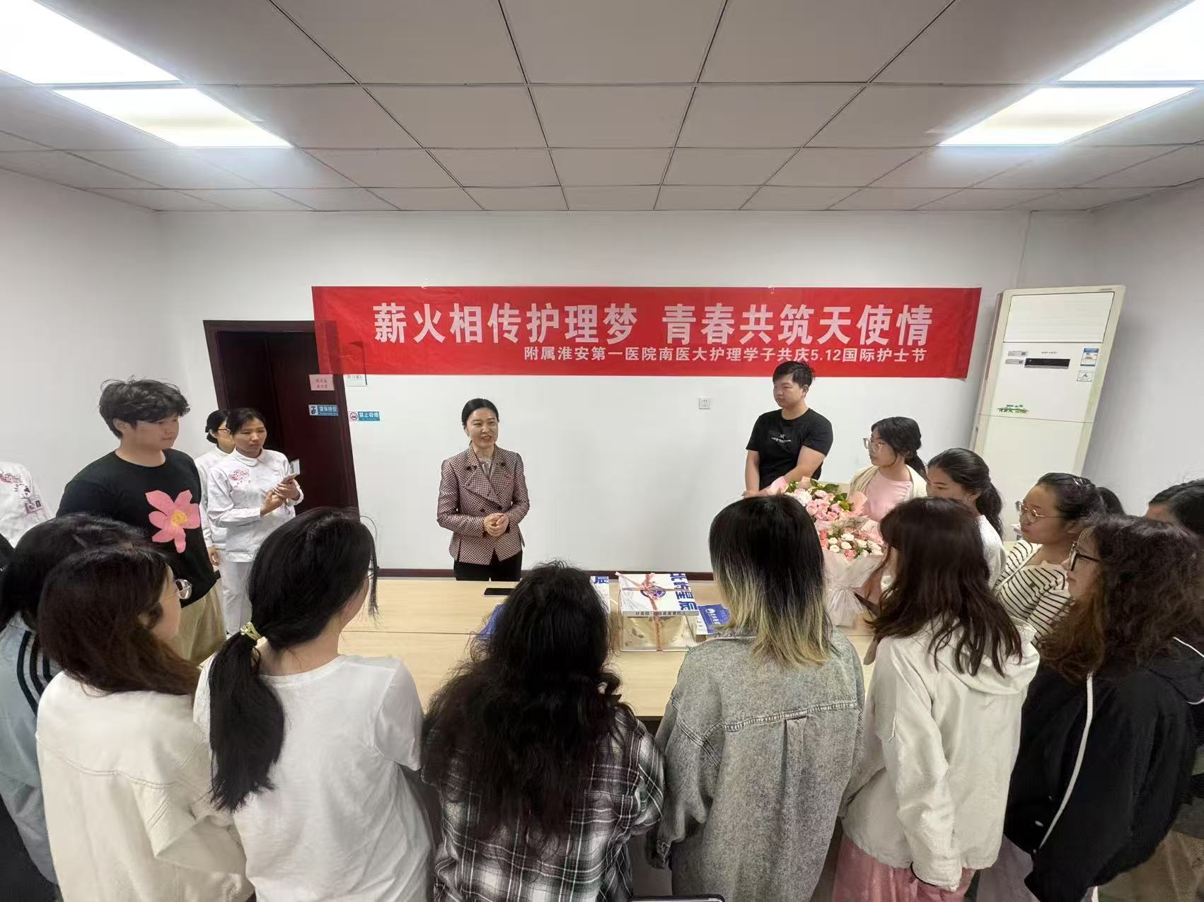 附属淮安第一医院护理部精心准备了鲜花和蛋糕,慰问驻点见习学生,护理部领导亲切询问学生们的学习和生活,激励大家投身护理事业。