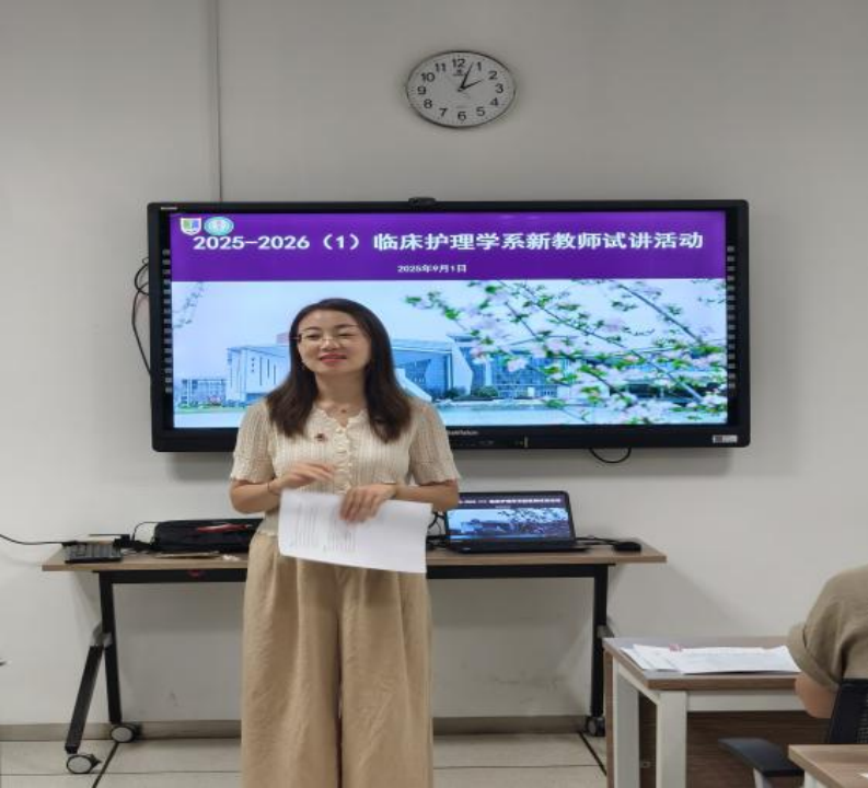 2025年9月1日下午14:00,临床护理学系在南京医科大学江宁校区学海楼C516组织开展2025-2026学年第一学期新教师试讲活动。活动由临床护理学系副主任唐慧婷主持,开云(中国)官方网站副院长嵇艳、教学督导孙国珍、临床护理学系主任陈明霞、《妇产科护理学》总课程负责人汪璐、《儿科护理学》总课程负责人唐慧婷、《内科护理学》总课程负责人雷阳担任点评专家,学系所有教师均参与了本次活动。学院新进教师、各附属医院新增授课教师共9名参与本次试讲活动,他们将在本学期首次参与《外科护理学》《内科护理学》《儿科护理学》《妇产科护理学》等课程的理论教学工作,且已通过课程及医院层面的首轮试讲。